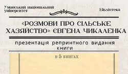 20.11.2025 Бібліотека УНУ запрошує на презентацію репринтного видання Євгена Чикаленка «Розмови про сільське хазяйство»