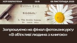 03.11.2025 Запрошуємо на фінал фотоконкурсу «В об’єктиві людина з книгою» 02.10.2025 Знайомство з бібліотечними дивами світу 29.09.2025 Український драматург реалістичного мистецтва
