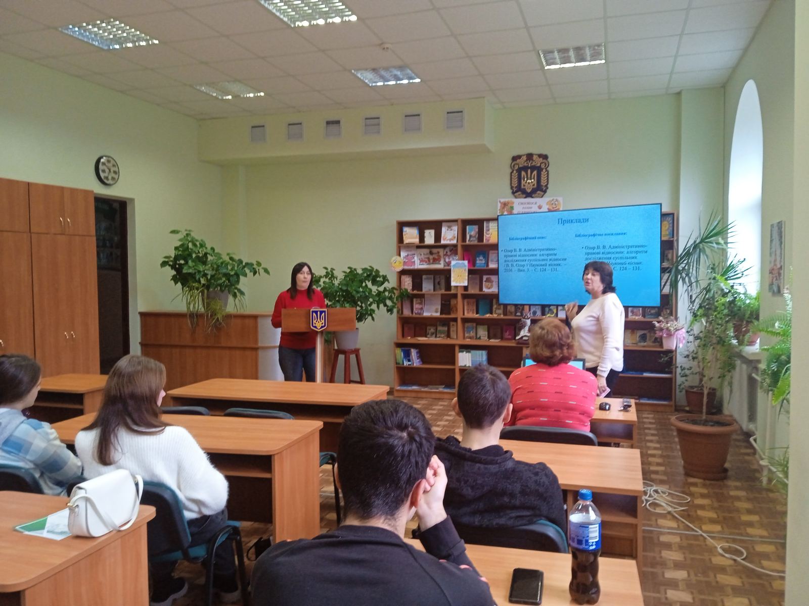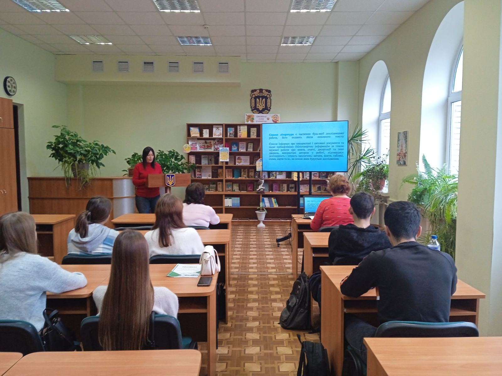 Під час інтерактивної частини заходу фахівець інформаційно-бібліографічного відділу бібліотеки Тетяна МАЄВСЬКА детально зупинилася на питанні правильного оформлення списку використаних джерел відповідно до вимог ДСТУ 8302:2015. Вона пояснила студентам основні принципи бібліографічного опису документів різних типів – книжкових видань, статей із наукових журналів, електронних ресурсів, законодавчих і нормативних актів.